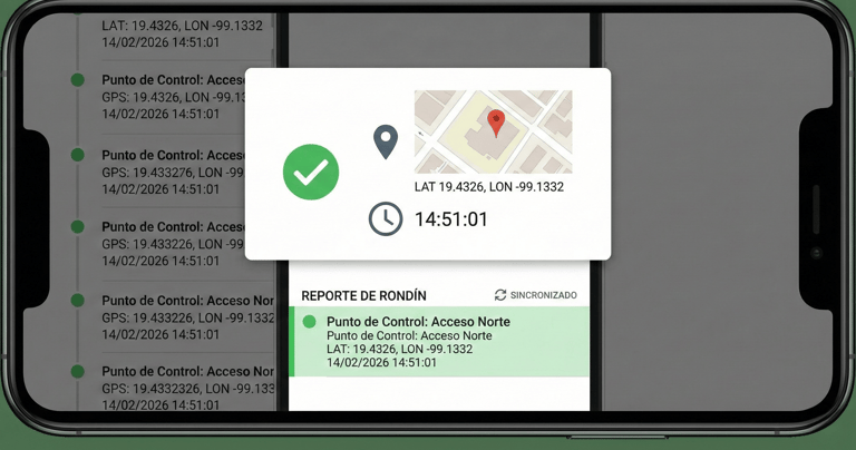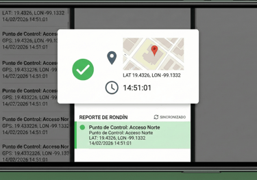Esto crea una prueba irrefutable de presencia, asegurando al cliente que el rondín se realizó en el momento y lugar correctos, eliminando la posibilidad de reportes falsos o llenados a destiempo.